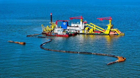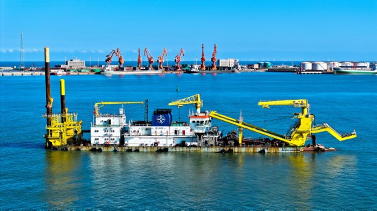 为进一步提高港口的吞吐能力和保证航道通行,由山东省滨州市交通出资开展集团投建的山东港口滨州港海港港区3万吨级航道维护性疏浚工程正在有序推动中。据悉,滨州港是山东省西北部的首要出海口,该疏浚工程完成后,将进一步疏通物流大通道,助推鲁西北地区亲近融入“环渤海经济圈”。新华社记者 郭绪雷 摄